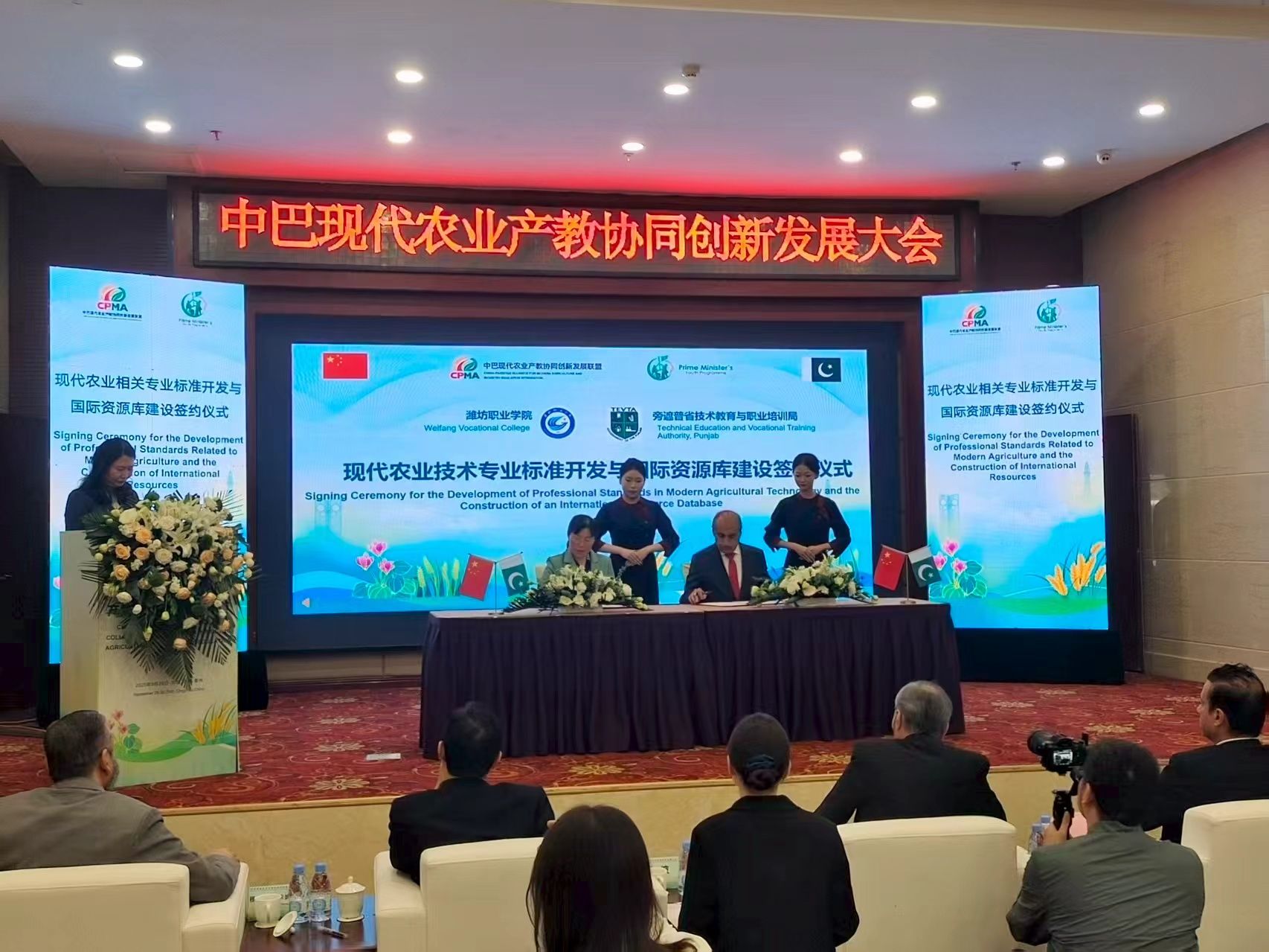 9月29日,中巴现代农业产教协同创新发展大会在青州市举行。巴基斯坦驻华大使馆科技参赞汗·穆罕默德,巴基斯坦旁遮普省技能发展与创业部秘书长纳迪尔·查塔,潍坊市人民政府党组成员、副市长狄波等出席大会。学院副院长陈美霞应邀参会,并在职业教育国际合作案例分享环节作交流发言。