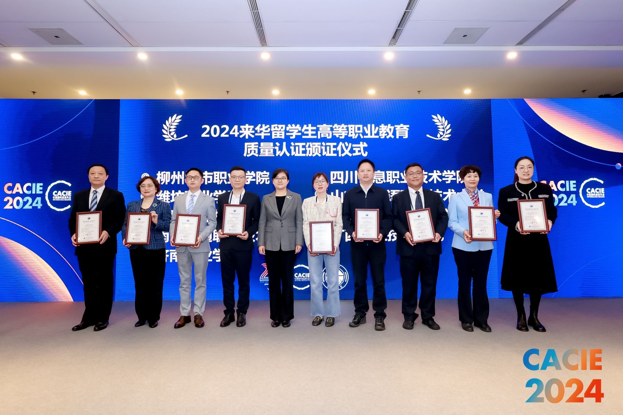 11月1日韩瑞东参加“培养当地人才、服务“走出去”企业——职业院校来华留学教育研讨会”分论坛。会上举行了来华留学生高等职业教育质量认证颁证仪式,76net必赢官网以优异成绩通过来华留学生高等职业教育质量认证,认证有效期为4年,中国教育国际交流协会副秘书长安延为学院颁发证书。