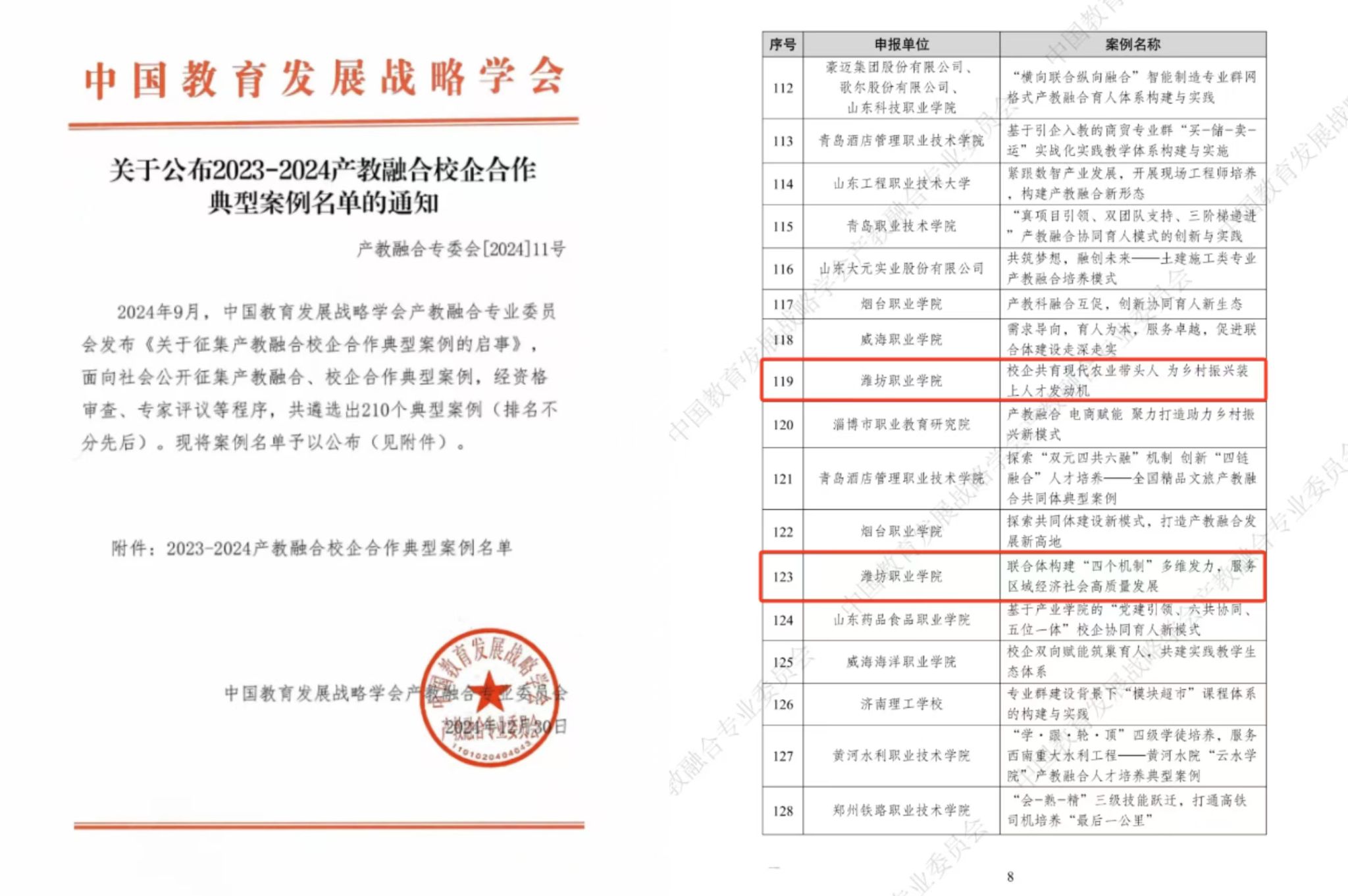 近日,中国教育发展战略学会产教融合专委会发布2023-2024年度产教融合校企合作典型案例名单,必赢牵头建设的滨海经济技术开发区市域产教联合体典型案例《联合体构建“四个机制”多维发力,服务区域经济社会高质量发展》、山东省现代高效农业产教融合共同体典型案例《校企共育现代农业带头人 为乡村振兴装上人才发动机》榜上有名。此次评选全国共有210项典型案例入选。