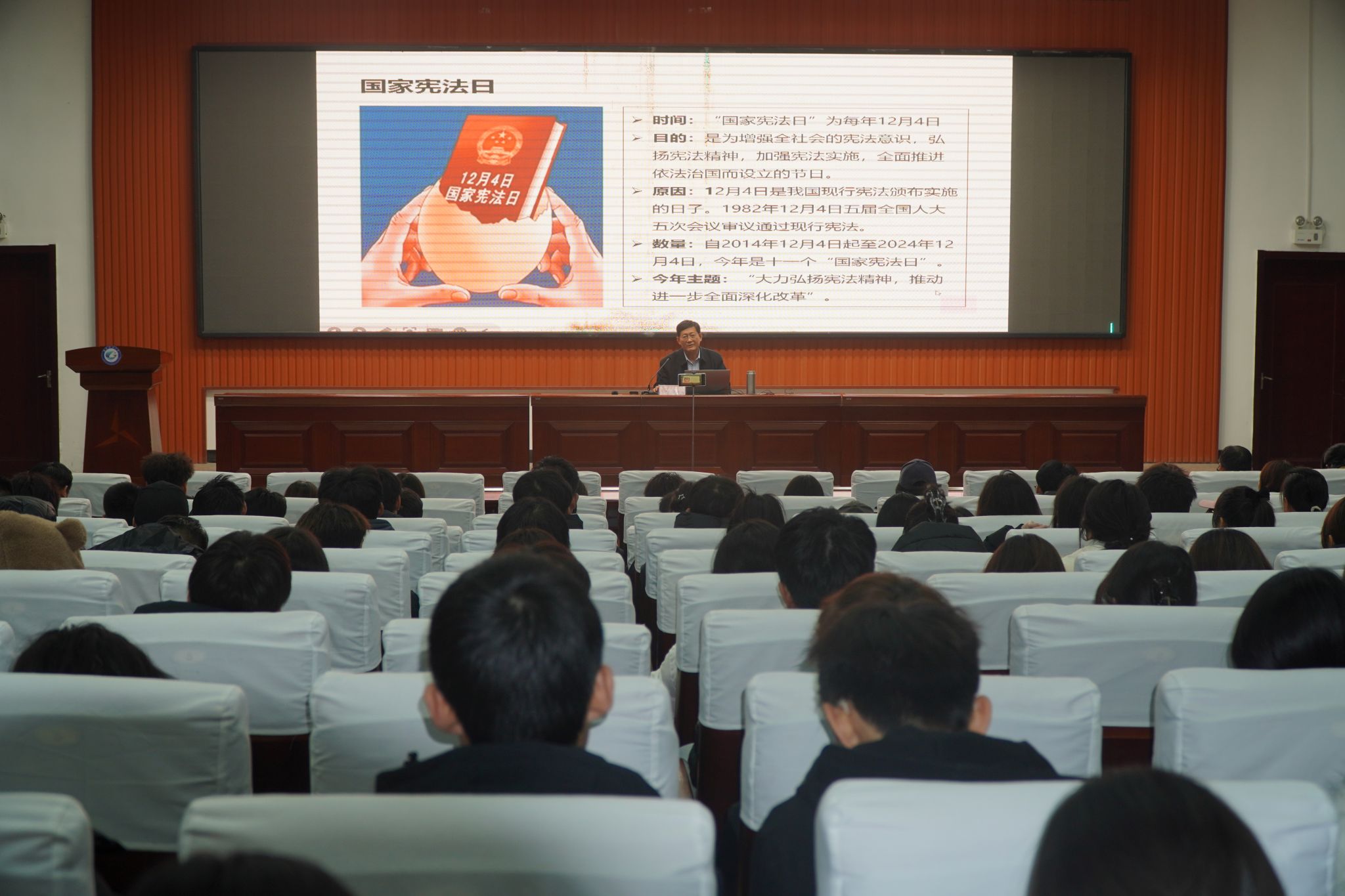 为深入学习宣传贯彻习近平法治思想,进一步推进大学生普法工作,12月4日,学院组织开展2024年“国家宪法日”公益普法活动。活动涵盖发放普法宣传资料、开展法律咨询、组织普法报告、观看法治专题节目等内容,由宣传部、团委学生工作处、马克思主义学院共同举办。