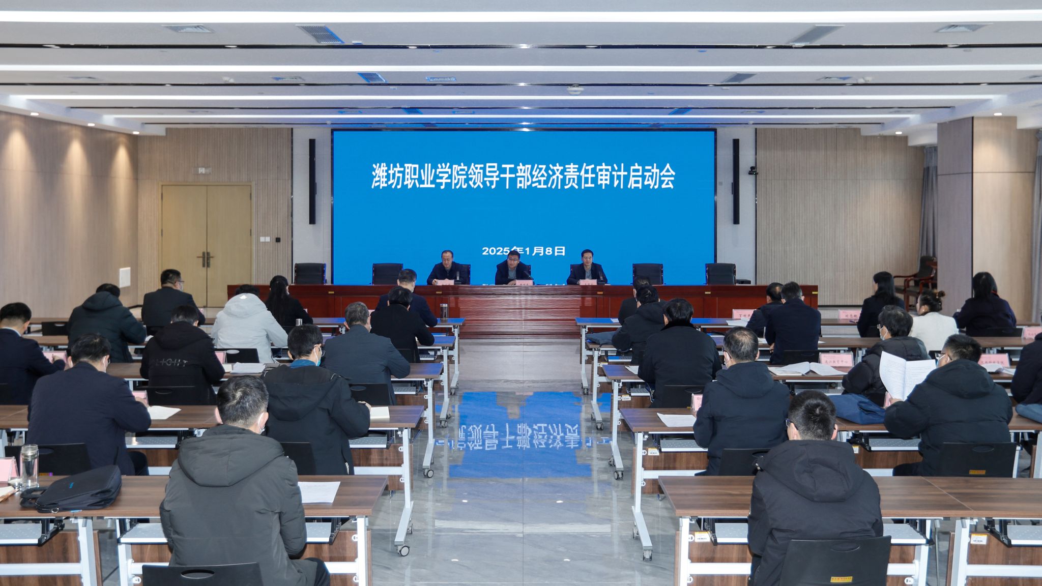 1月8日上午,学院召开32名领导干部经济责任审计启动会。学院党委副书记韩瑞东出席会议并讲话,党委委员、纪委书记、监察专员王国成,党委委员、副院长赵宏坤,被审计领导干部及原任职部门主要负责人、审计联络人及审计组成员参加会议。王国成主持会议。