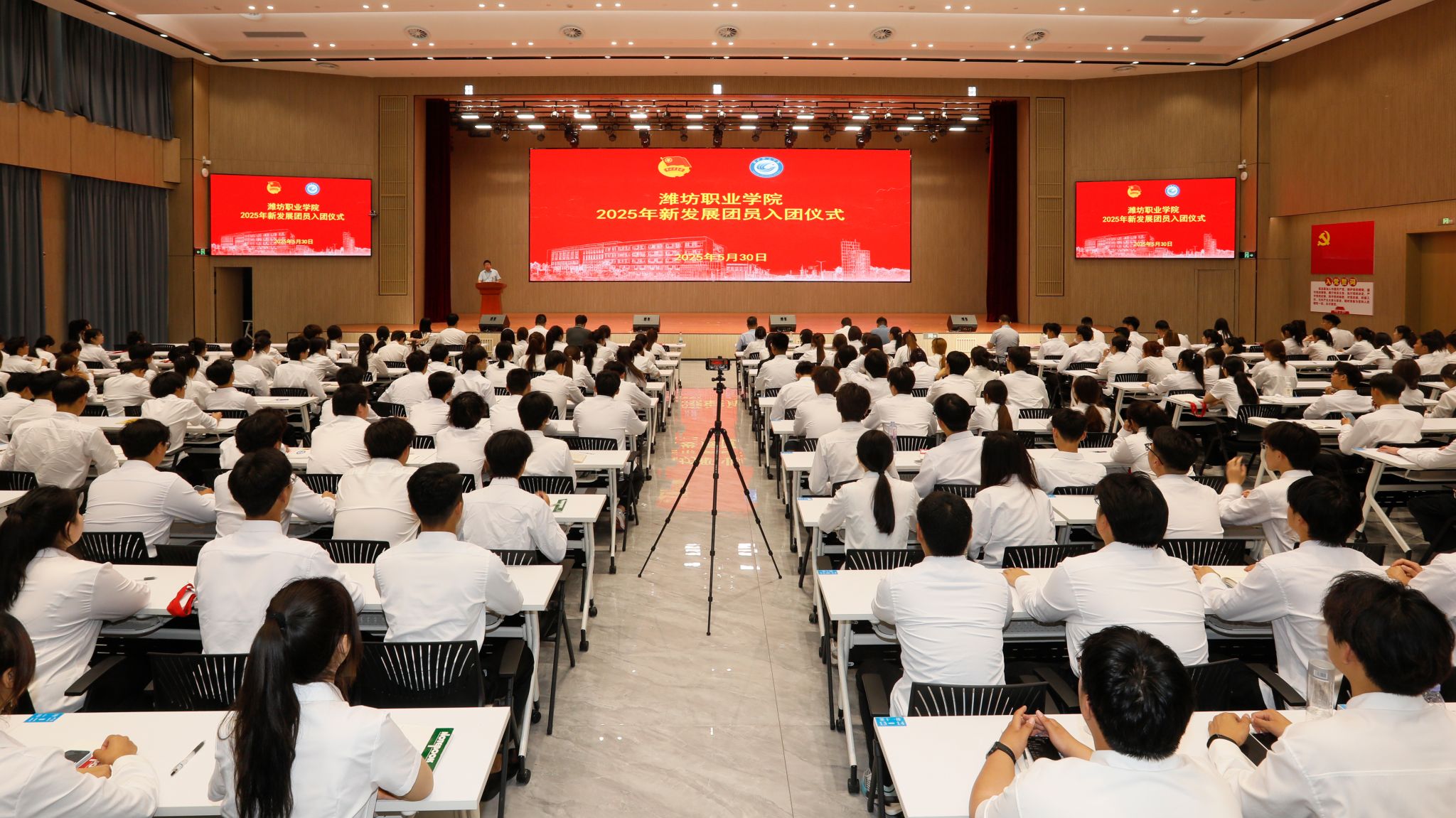 5月30日下午,学院2025年新发展团员入团仪式、第十一期“青年马克思主义者培养工程”暨“强作风 提素养”学生团干部素质能力提升工程培训班结业典礼在滨海校区综合楼报告厅举行。学院党委委员、副院长任培华出席,学院团委主要负责同志,各二级学院团总支负责同志,2025年新发展团员代表及第十一期“青马班”学员共300余人参加活动。
