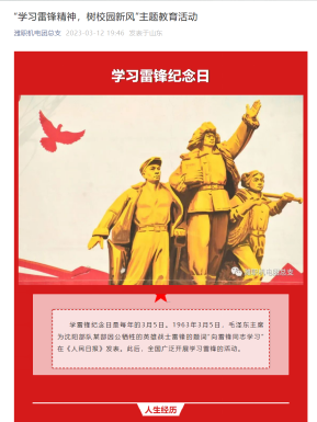 为深入学习贯彻党的二十大精神,全面落实习近平总书记关于深入开展学雷锋活动的重要指示,让雷锋精神在新时代绽放璀璨光芒,学院三月集中开展了学雷锋青年志愿服务系列活动,广大潍职学子在实践中不断践行和丰富雷锋精神。