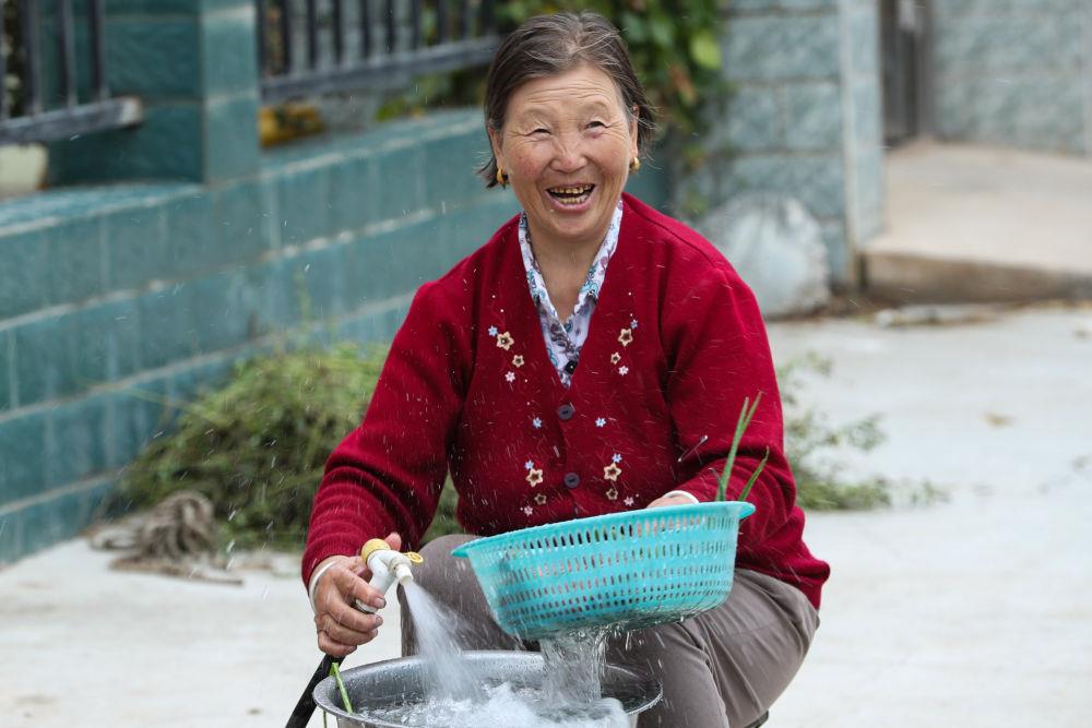 △甘肃定西市陇西县双泉镇癿羊口村的村民,用引洮工程引来的自来水洗菜。