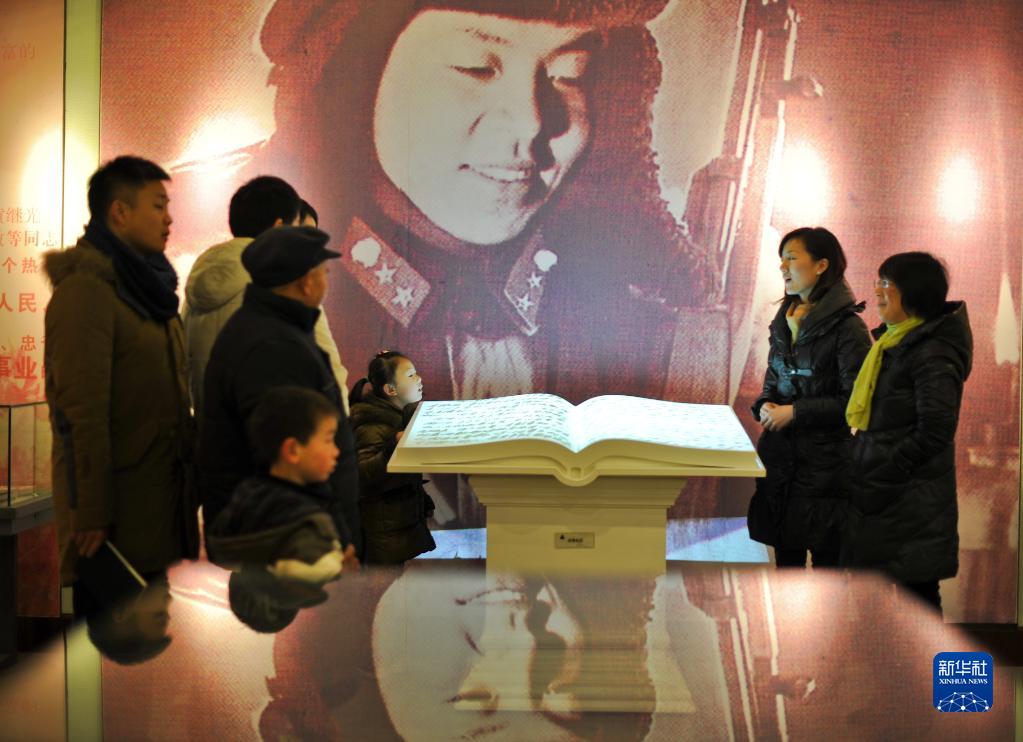 2023年2月10日,小朋友跟随家长在辽宁省抚顺雷锋纪念馆里参观。