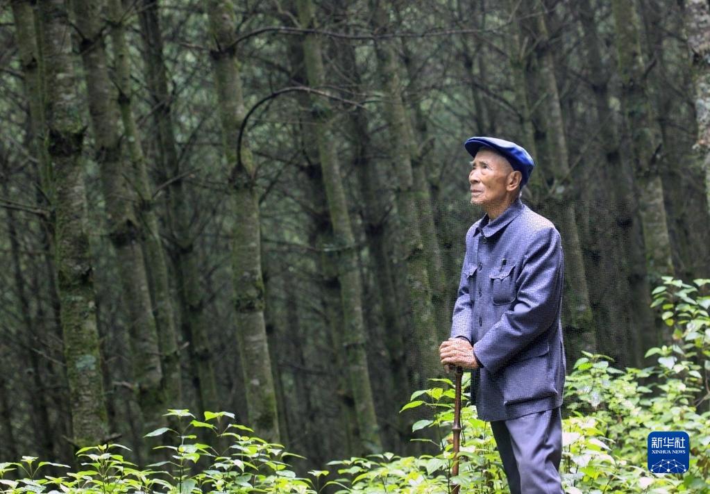 退休后回到家乡云南施甸植树造林的杨善洲望着树林(资料照片)。