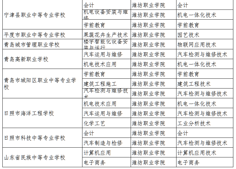 当年的招生专业及计划以联合办学中职学校公布的招生简章为准。
