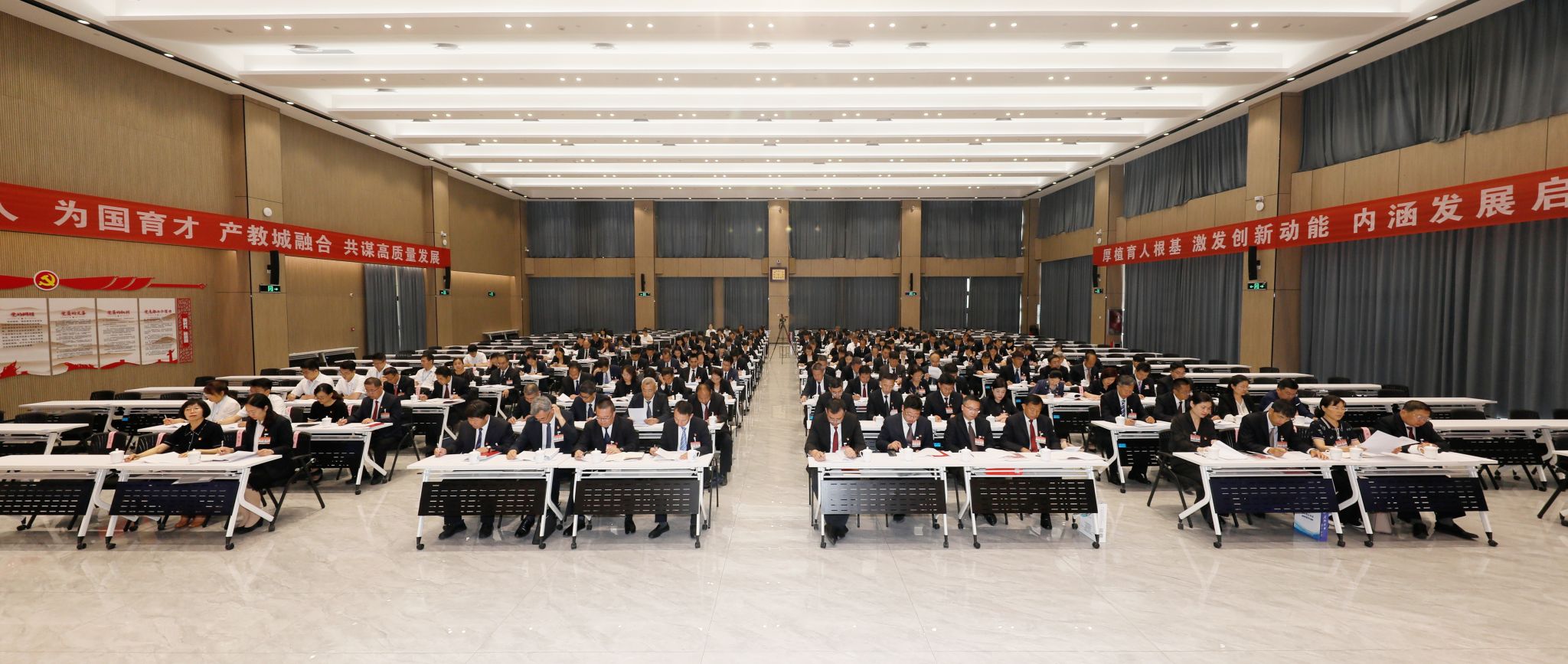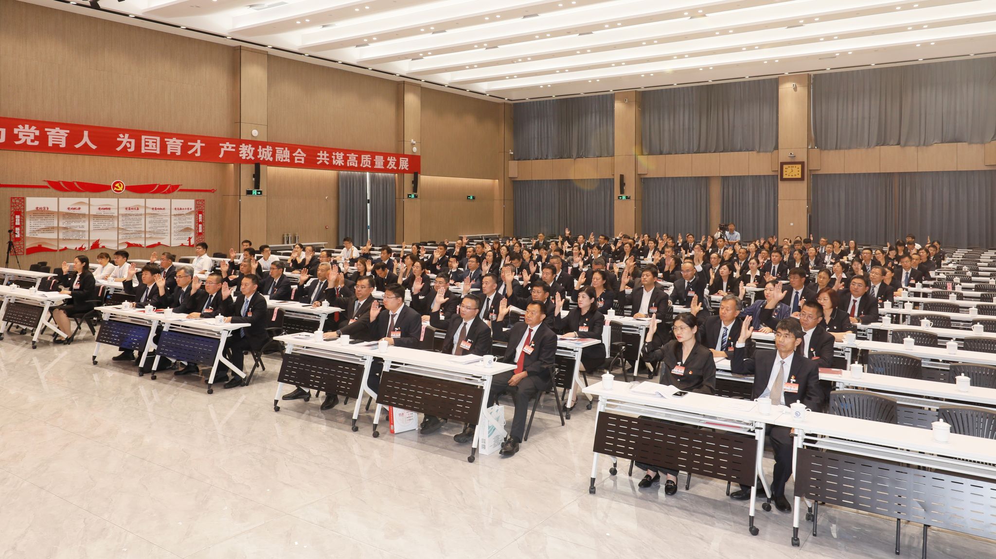 王浩作题为《凝心聚力谱写内涵建设新华章 改革攻坚构建服务发展大格局 为打造高水平专业集群创建高水平职业技术大学而努力奋斗》的报告
