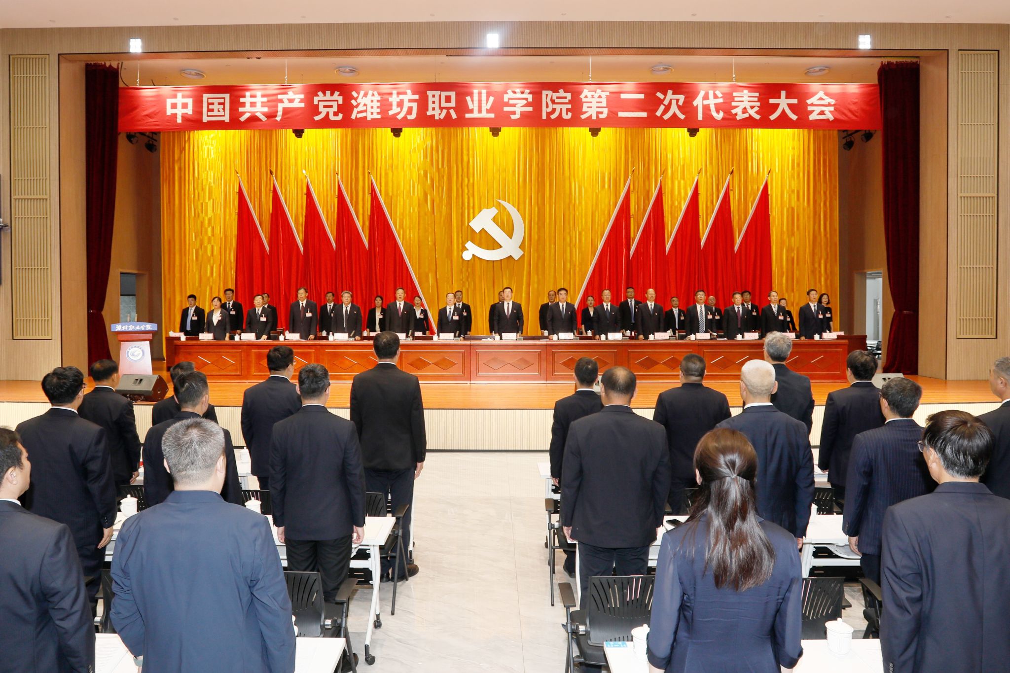 7月1日,中国共产党76net必赢官网第二次代表大会在综合楼一楼西报告厅召开。潍坊市委常委、宣传部部长、市委教育工委书记杨建华,潍坊滨海经济技术开发区党工委书记、管委会主任韩文宏,潍坊市教育局党组成员、山东(潍坊)海洋科技大学园管理办公室党组书记、主任张英杰到会指导。学院党委书记王浩,党委副书记、院长韩瑞东等154名正式代表,已退休的学院有关领导同志、列席人员参加会议。